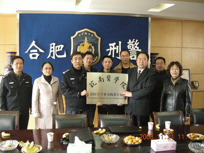 11月19日-21日,副院长李朝品率教务处副处长杨建勤、医学三系副主任陈阳、法医专业教师阎宜峰、林旭东一行五人赴淮北市公安局、淮南市公安局、合肥市公安局,为法医专业实践教学基地挂牌,受到三地公安局领导的热情接待。