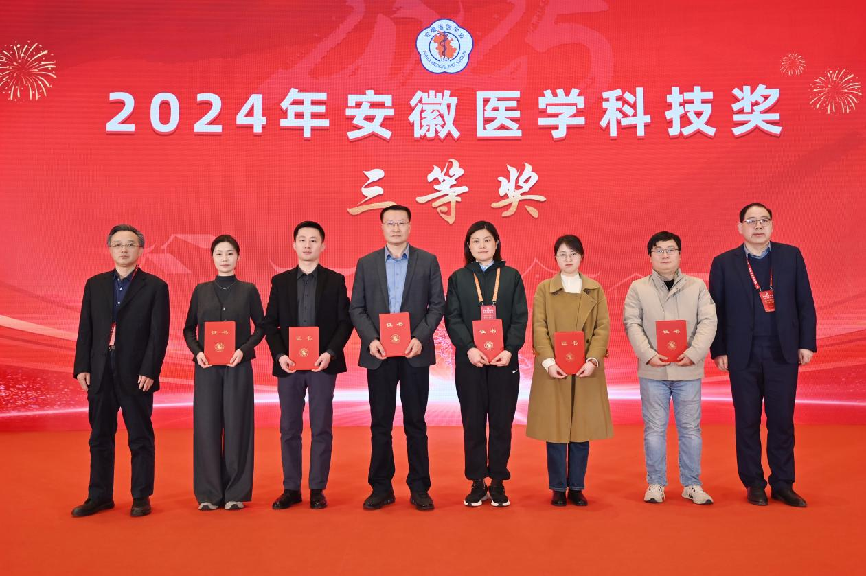 近日,安徽省医学会2025年年会暨第十二届理事会第三次会议在合肥召开。会上举行2024年安徽医学科技奖颁奖仪式,我校第一附属医院获二等奖1项、三等奖2项。
