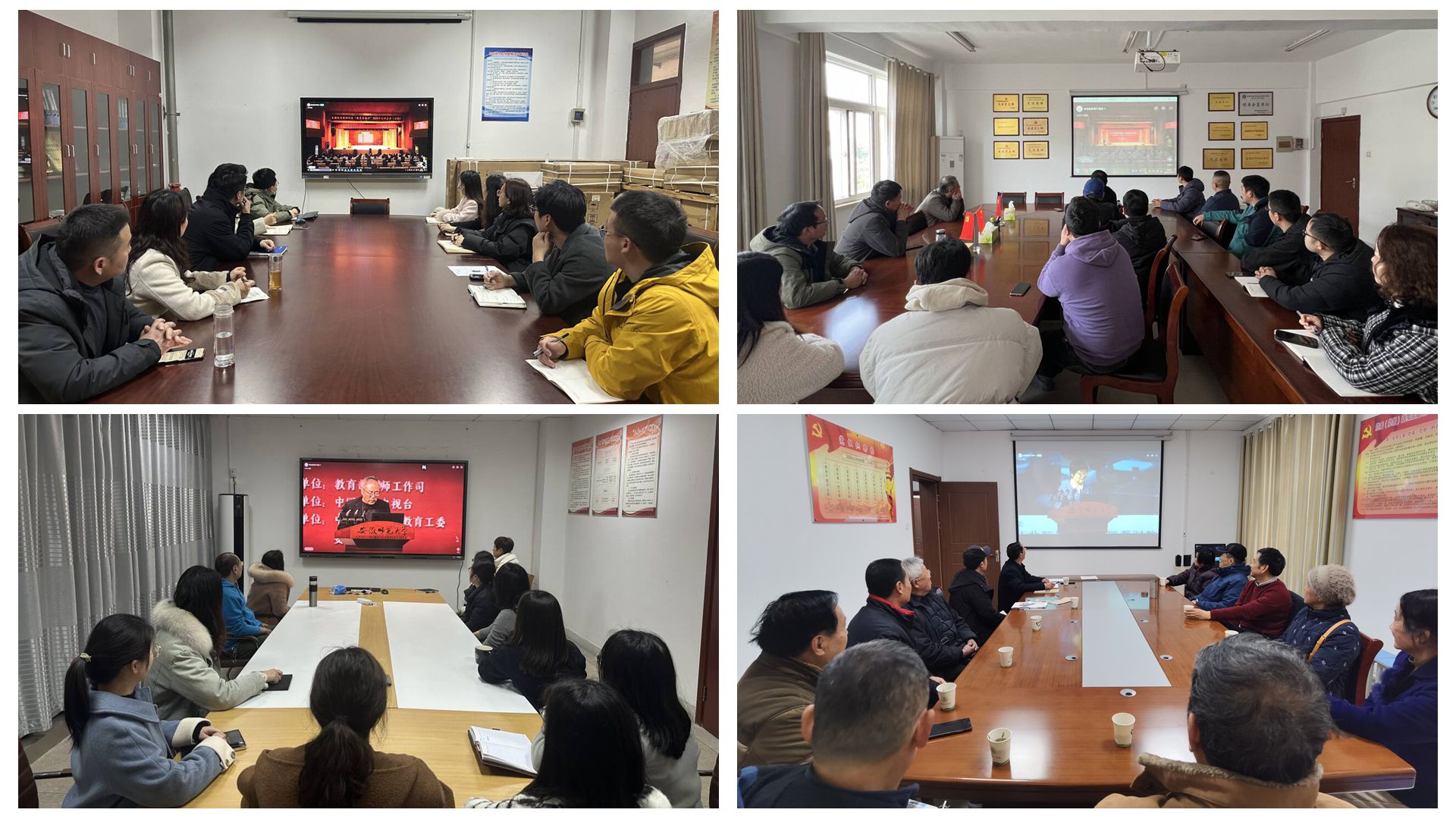 为深入贯彻落实习近平总书记关于大力弘扬教育家精神的重要指示,激励广大人民教师践行教育家精神,2月27日下午,全国优秀教师代表“教育家精神”2025年巡回宣讲(安徽)活动在安徽师范大学举行。我校高度重视收看工作,以各级基层党组织为单位设立分会场,组织1700余名教职工(含临床教师)集中收看了巡回宣讲直播,其余教职工采取分散学习的方式进行收看。