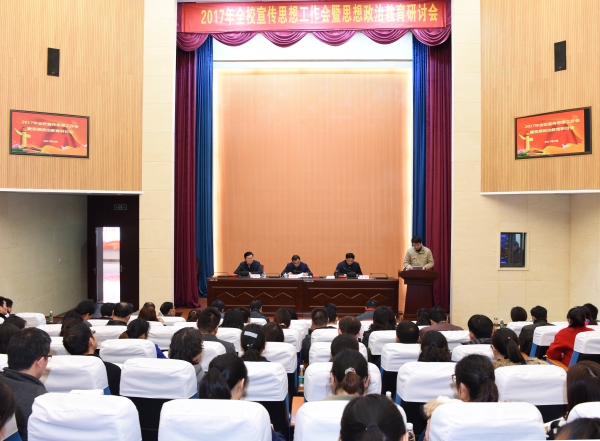 东风浩荡满眼春,万里征程催人进。在全国上下深入学习贯彻落实全国宣传部长会议、全国高校思想政治工作会议精神之际,我校于2017年3月22日在校逸夫科技楼学术报告厅召开2017年全校宣传思想工作会暨思想政治教育研讨会。校党委书记王先俊、党委副书记李刚、副院长吴金月和二级党组织的主要负责人,校思政教育研究会理事,党办、组织部、宣传部、学工部、团委、马克思主义学院等部门全体工作人员以及全体辅导员,共计100余人参加会议。会议由校党委副书记李刚主持。
